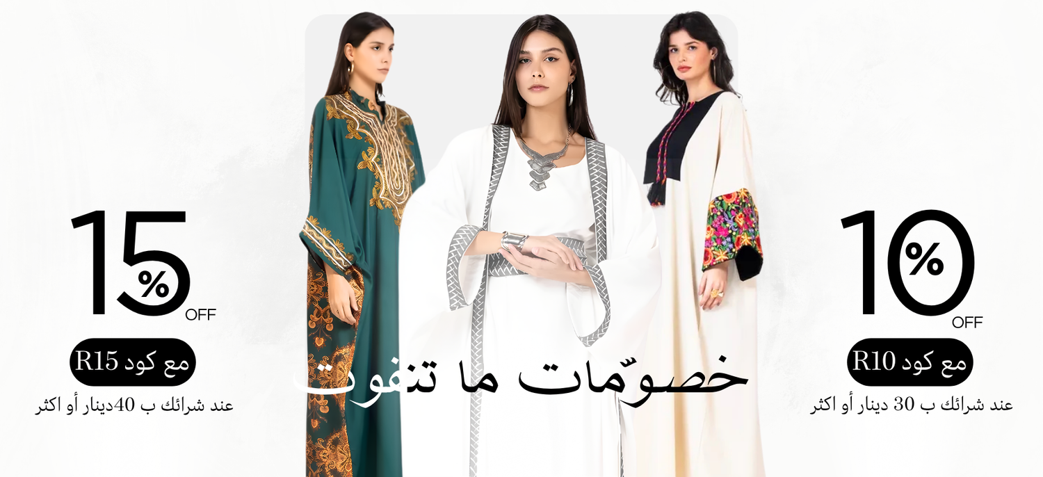 واحصلي علي خصم 10% عند طلبك ب 30 دينار او اكثر كود R10