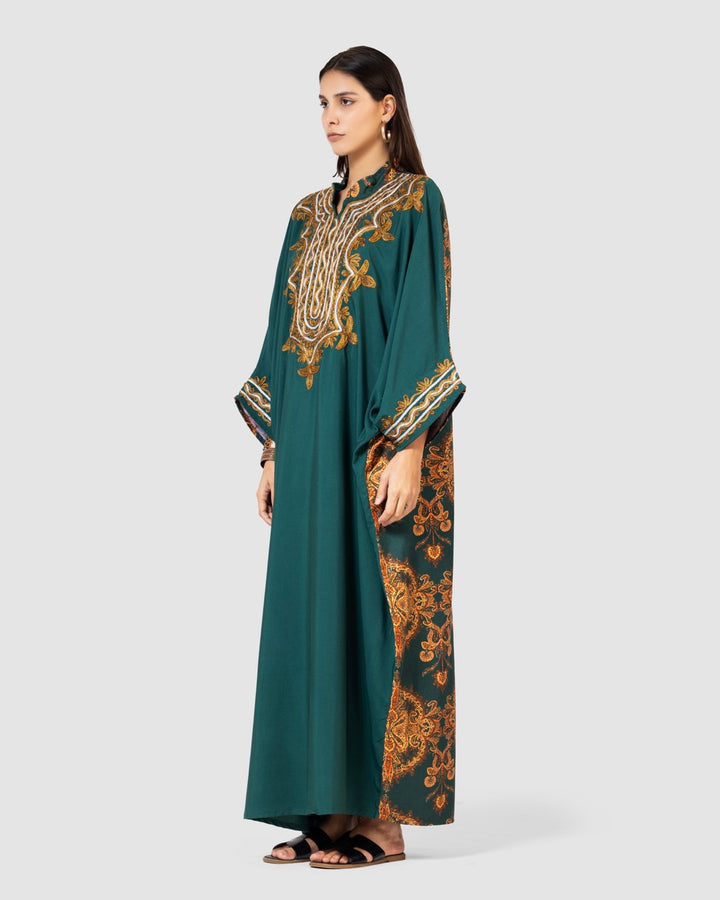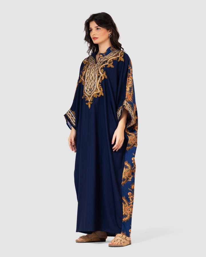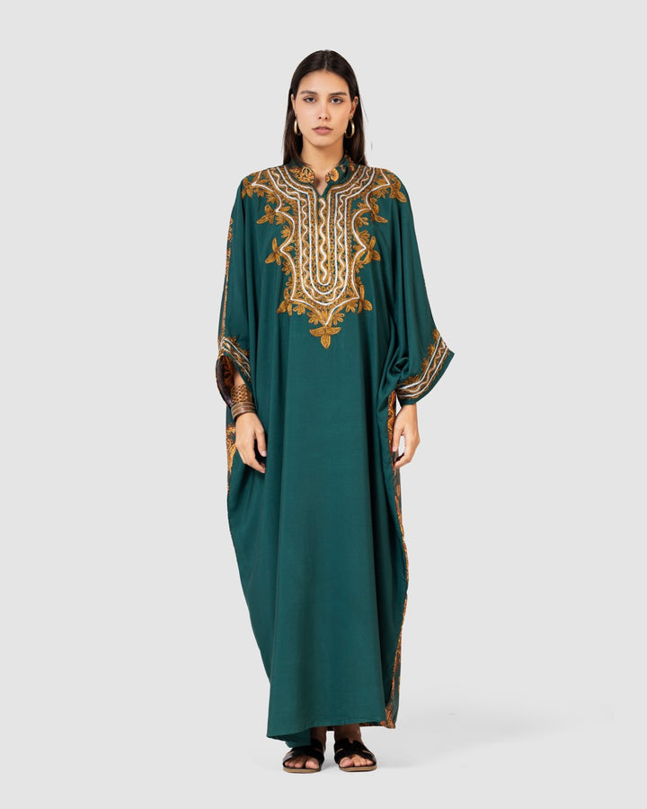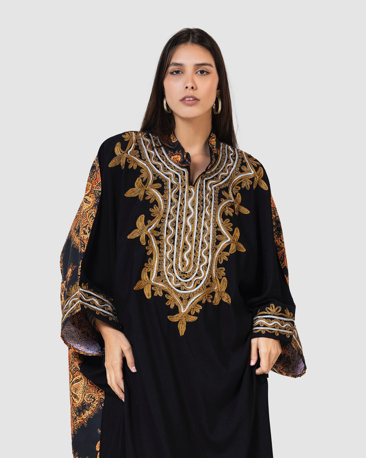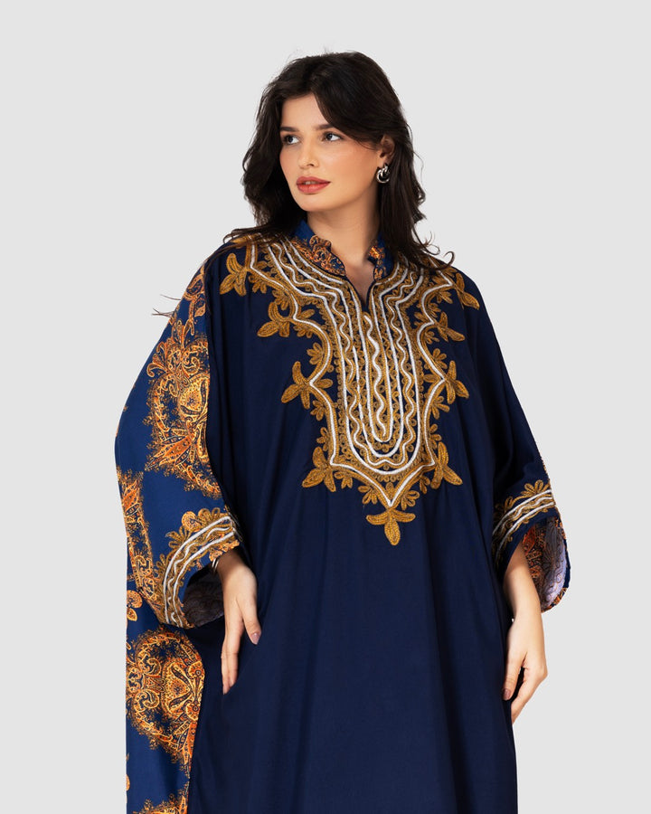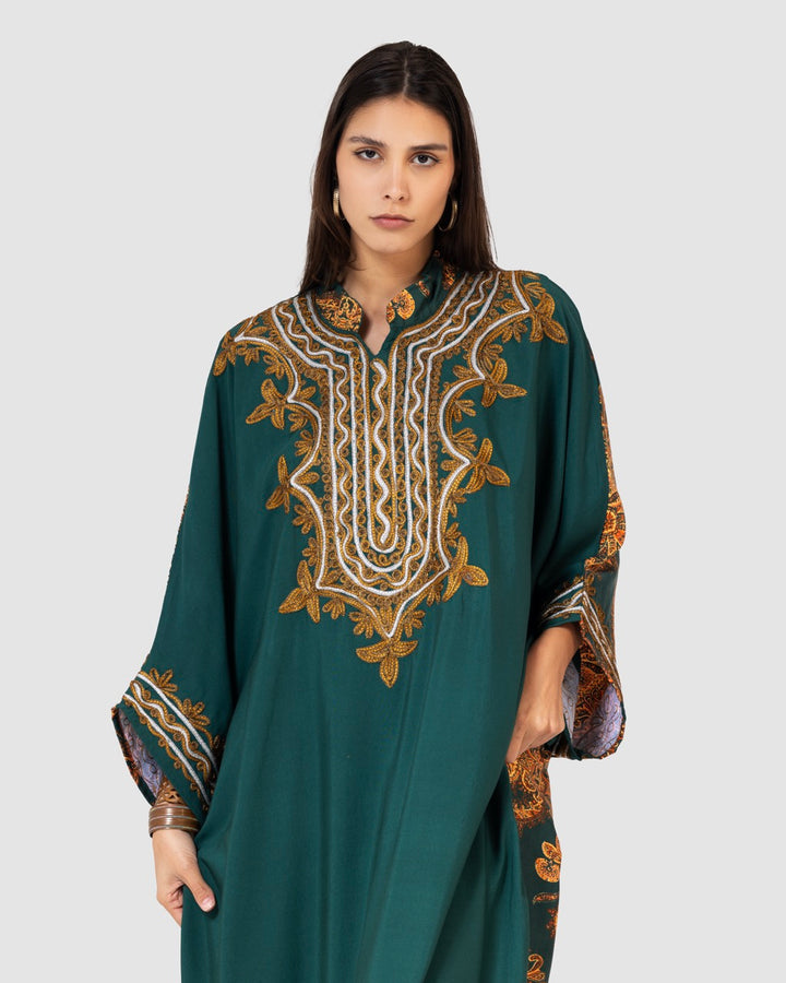 • تصميم واسع وانسيابي بقصة دراعة تراثية