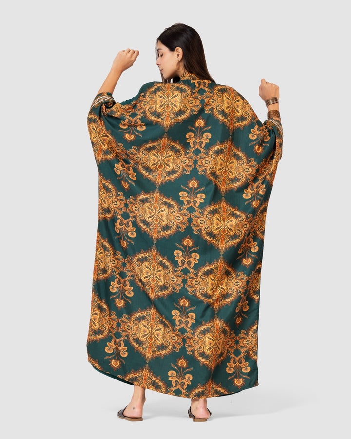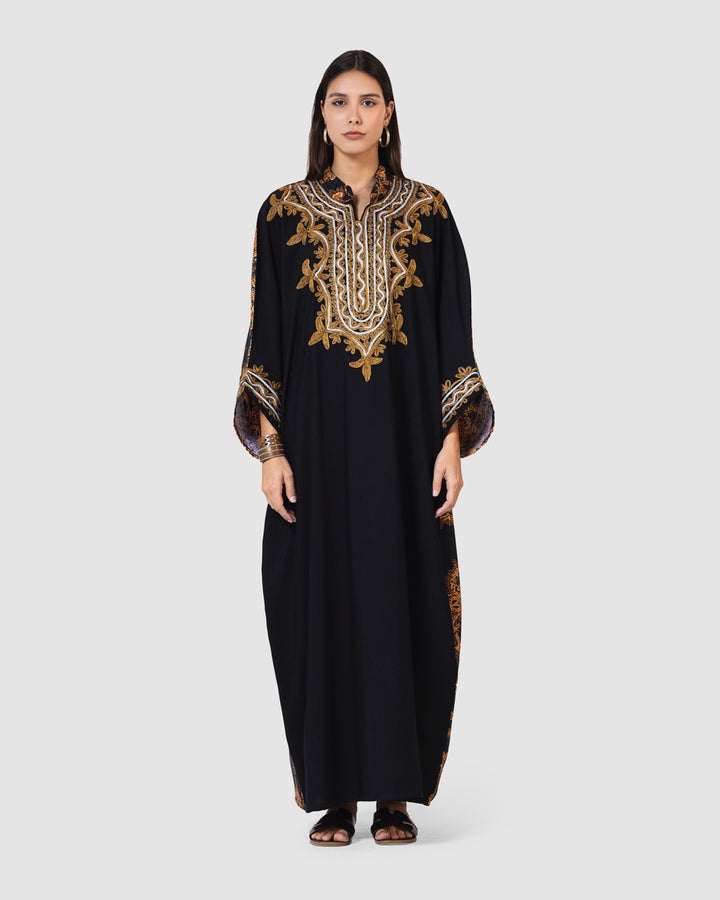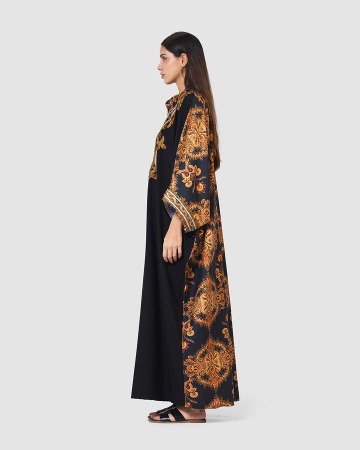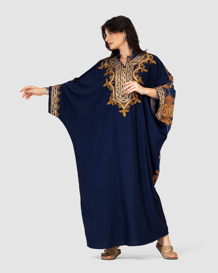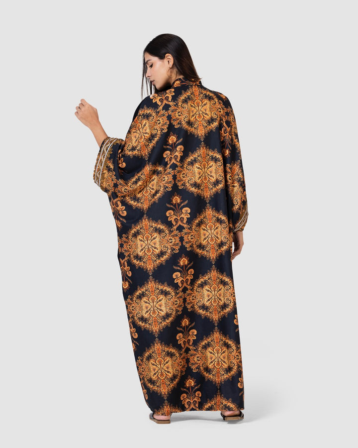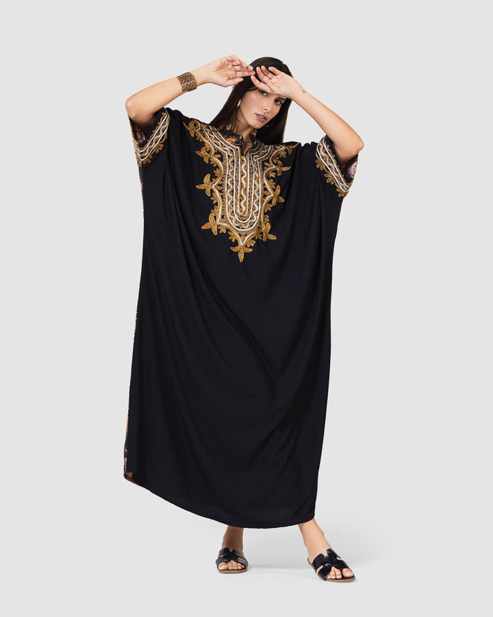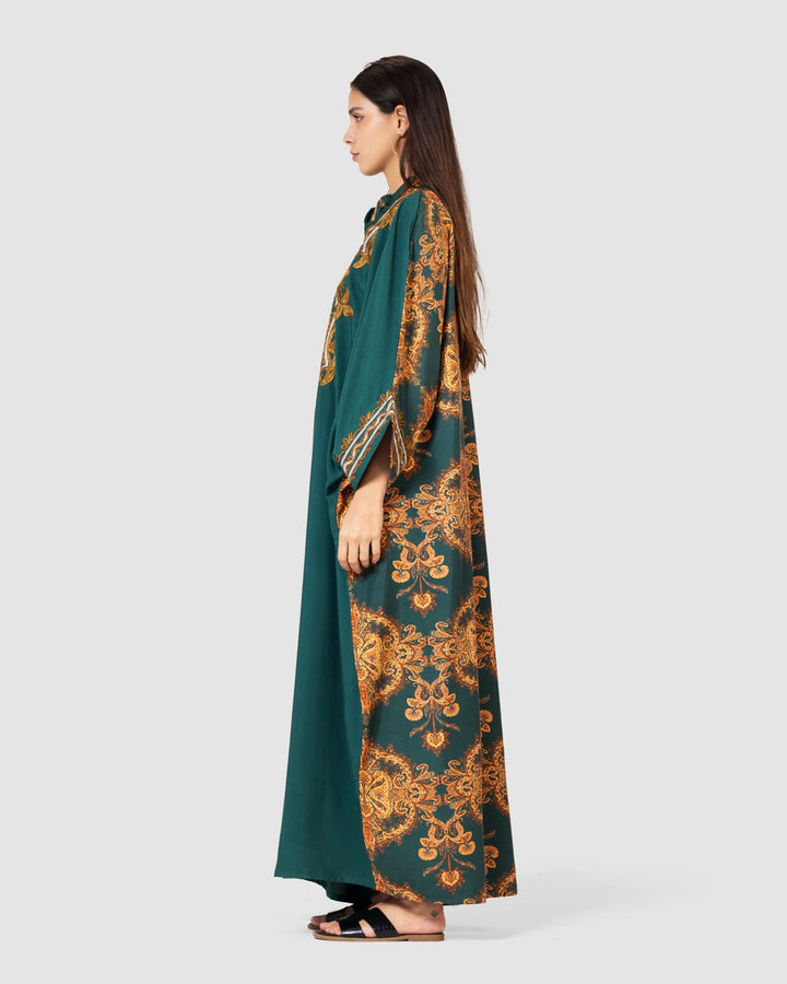 • تصميم واسع وانسيابي بقصة دراعة تراثية