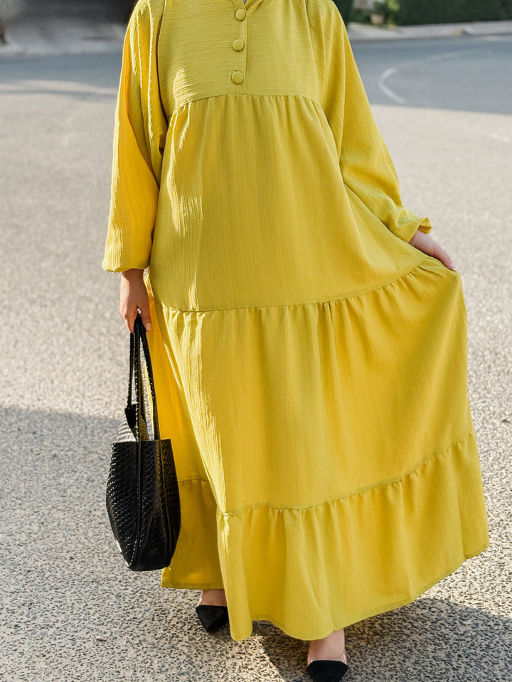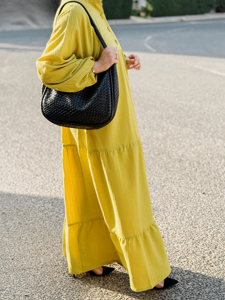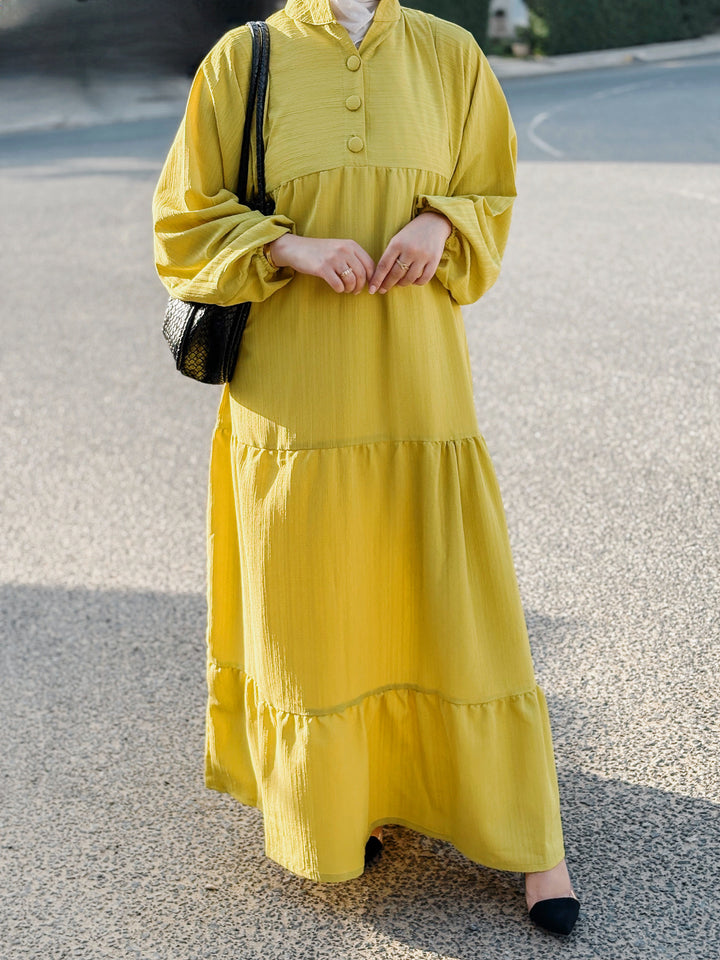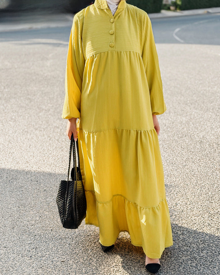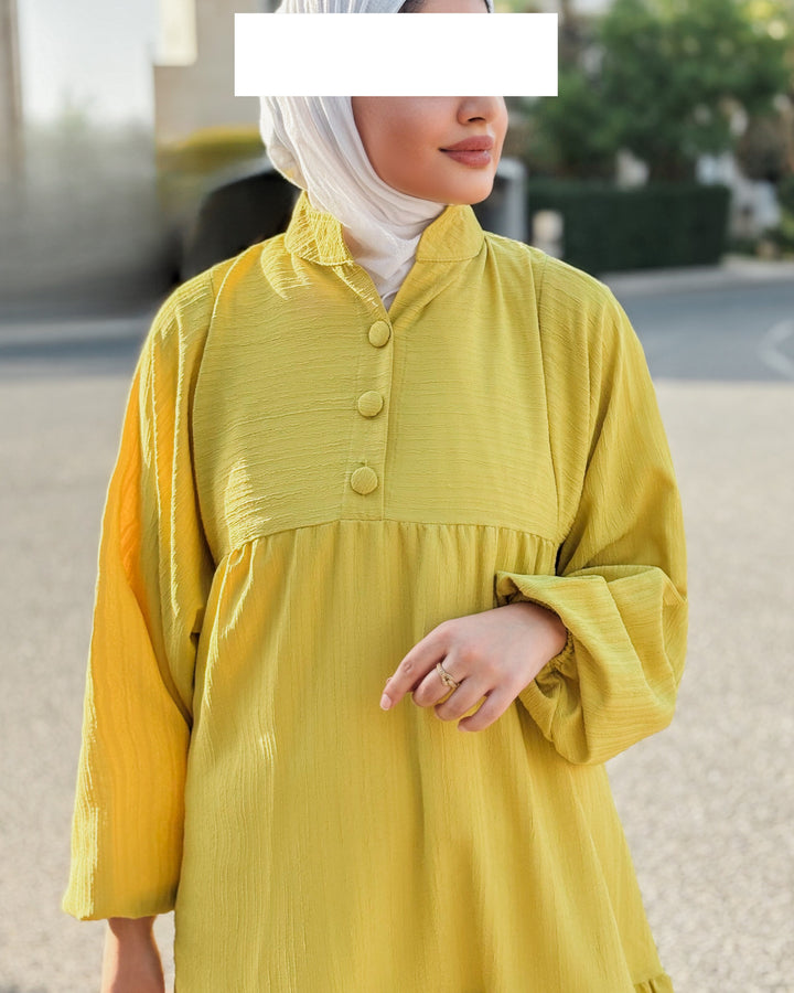 ارتدي الصيف بأناقة مع هذا الفستان المصمم من خامة الكتان الباردة، واللي يضمن لك إطلالة خفيفة ومنعشة مع كل خطوة. تصميم الأدوار الانسيابي يعطي الفستان حركة ناعمة وانسيابية، ويوفر مظهر أنثوي راقٍ بدون أي مجهود.