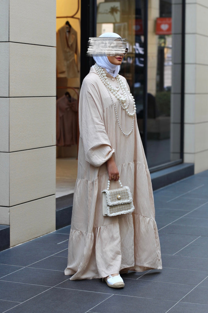 يتميّز هذا الفستان بقصّة أنيقة وانسيابية مصممة خصيصًا للمرأة التي تبحث عن الراحة دون التخلي عن الذوق الرفيع. مصنوع من قماش الكتان الطبيعي المعروف بملمسه الخفيف وقدرته على التهوية، مما يجعله الخيار المثالي لفصل الصيف والربيع.